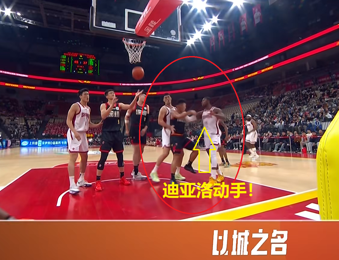 在第二节比赛,2分41秒时,迪亚洛持球突破上篮得分,然而,防守的贺希宁却被山西队球员葛昭宝推了一下,从而失去身体平衡,从而与迪亚洛有了身体接触。